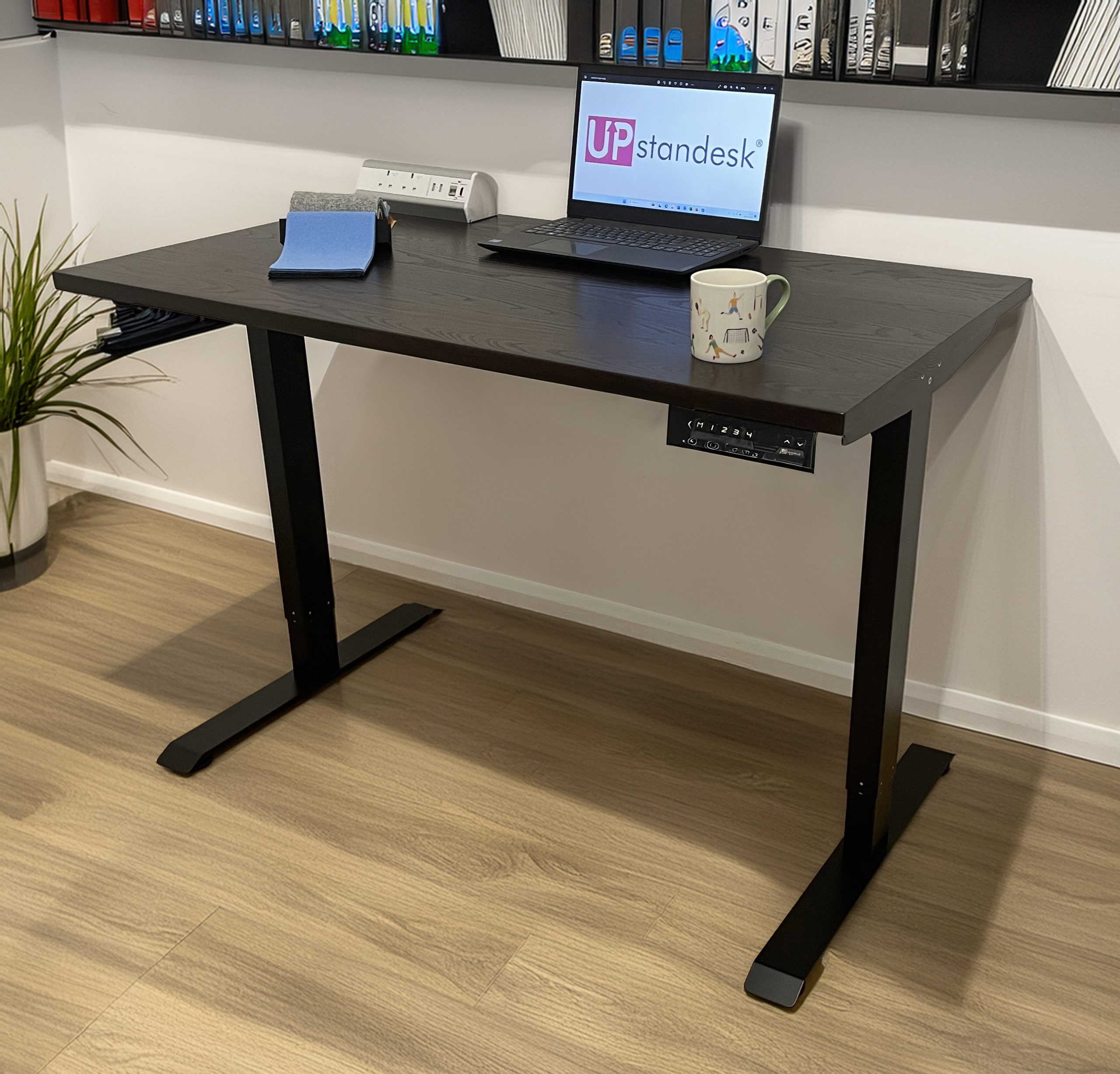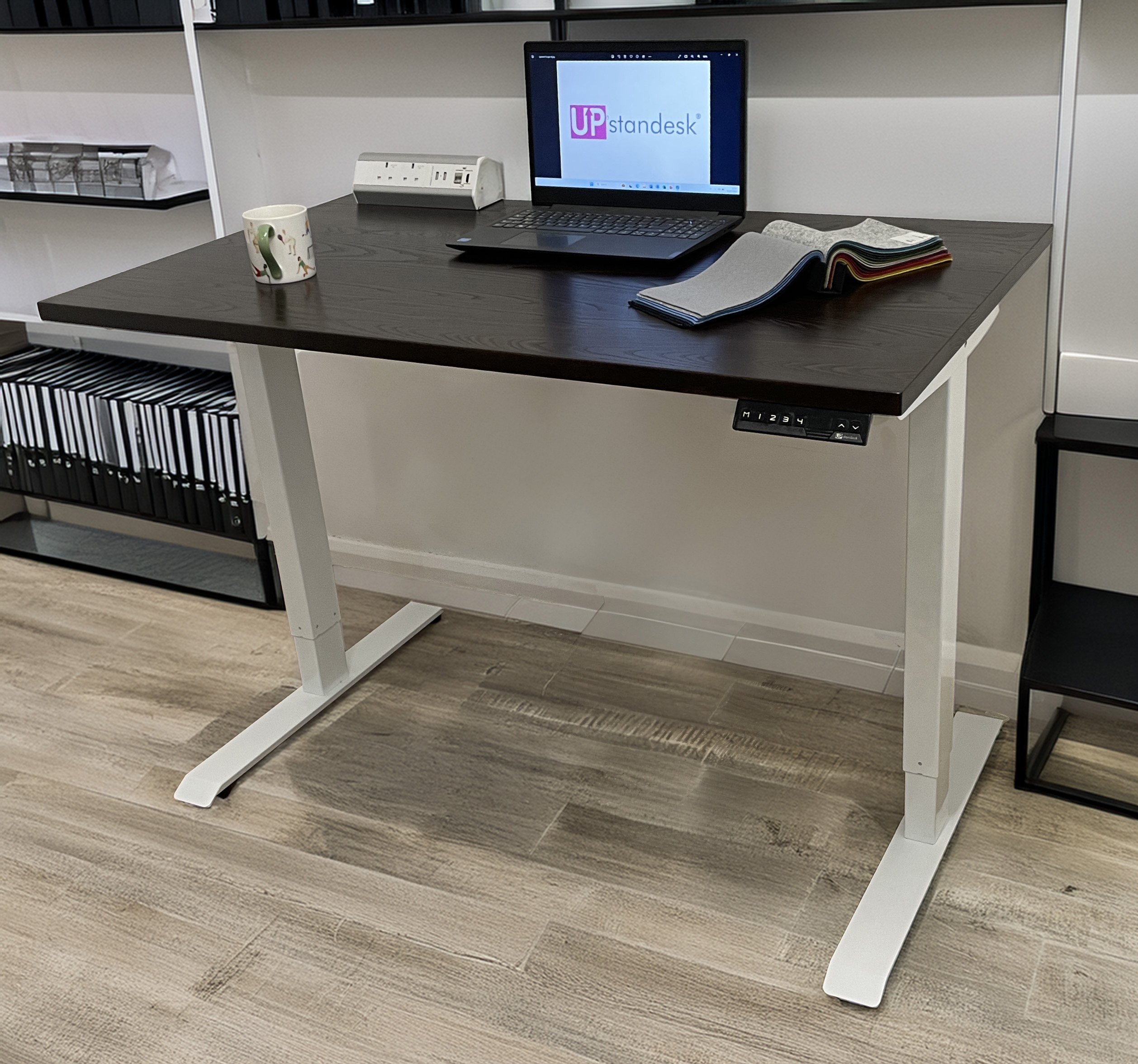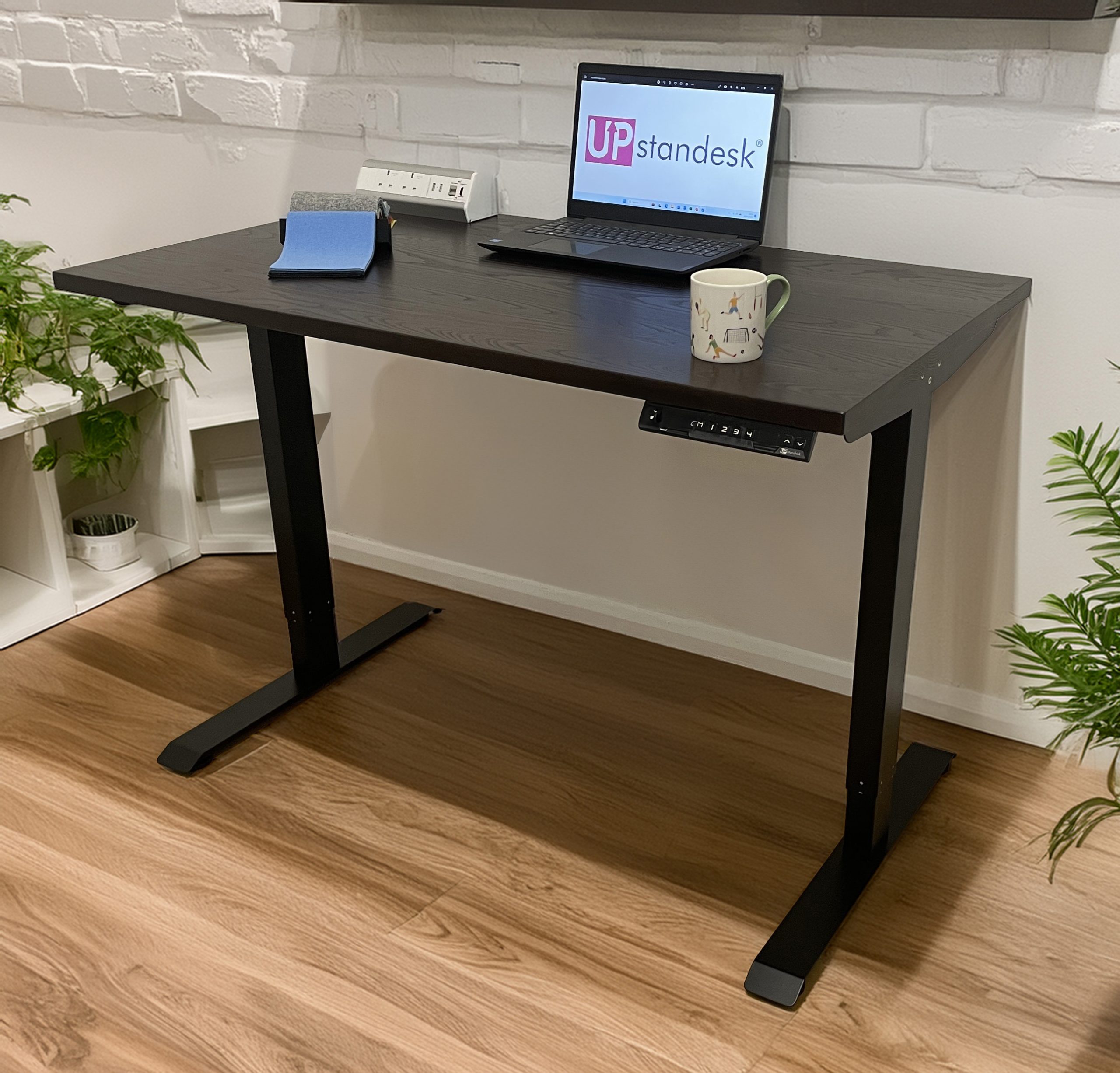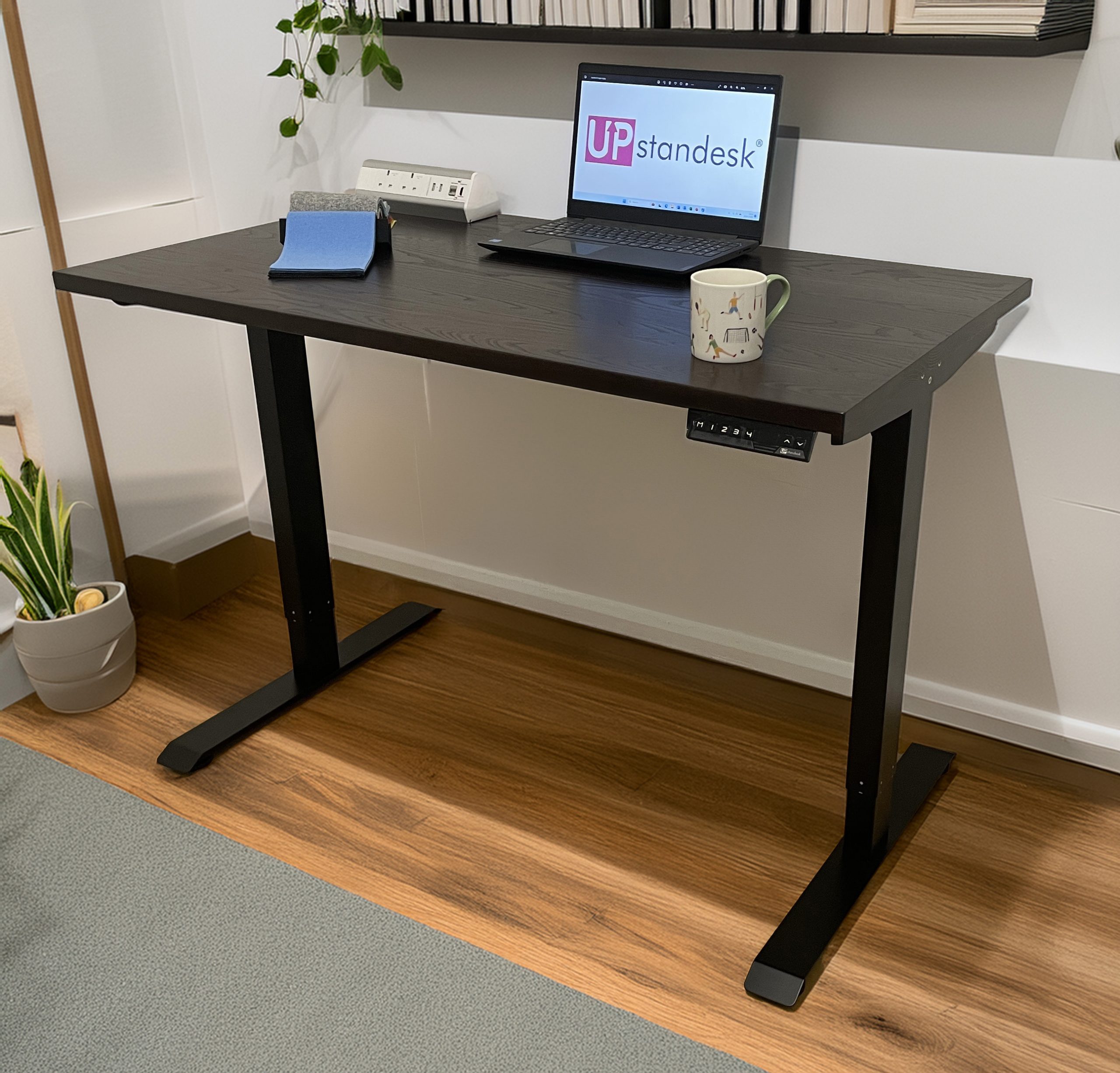Introducing the Dark Ash Standing Desk, expertly crafted with a robust 25mm thick dark ash wood top. Not only does this premium material ensure long-lasting durability, but it also brings a touch of sophistication to your workspace. Moreover, the rich, deep tones of the ash wood provide warmth and elegance, making your desk a striking centrepiece that will inspire productivity.