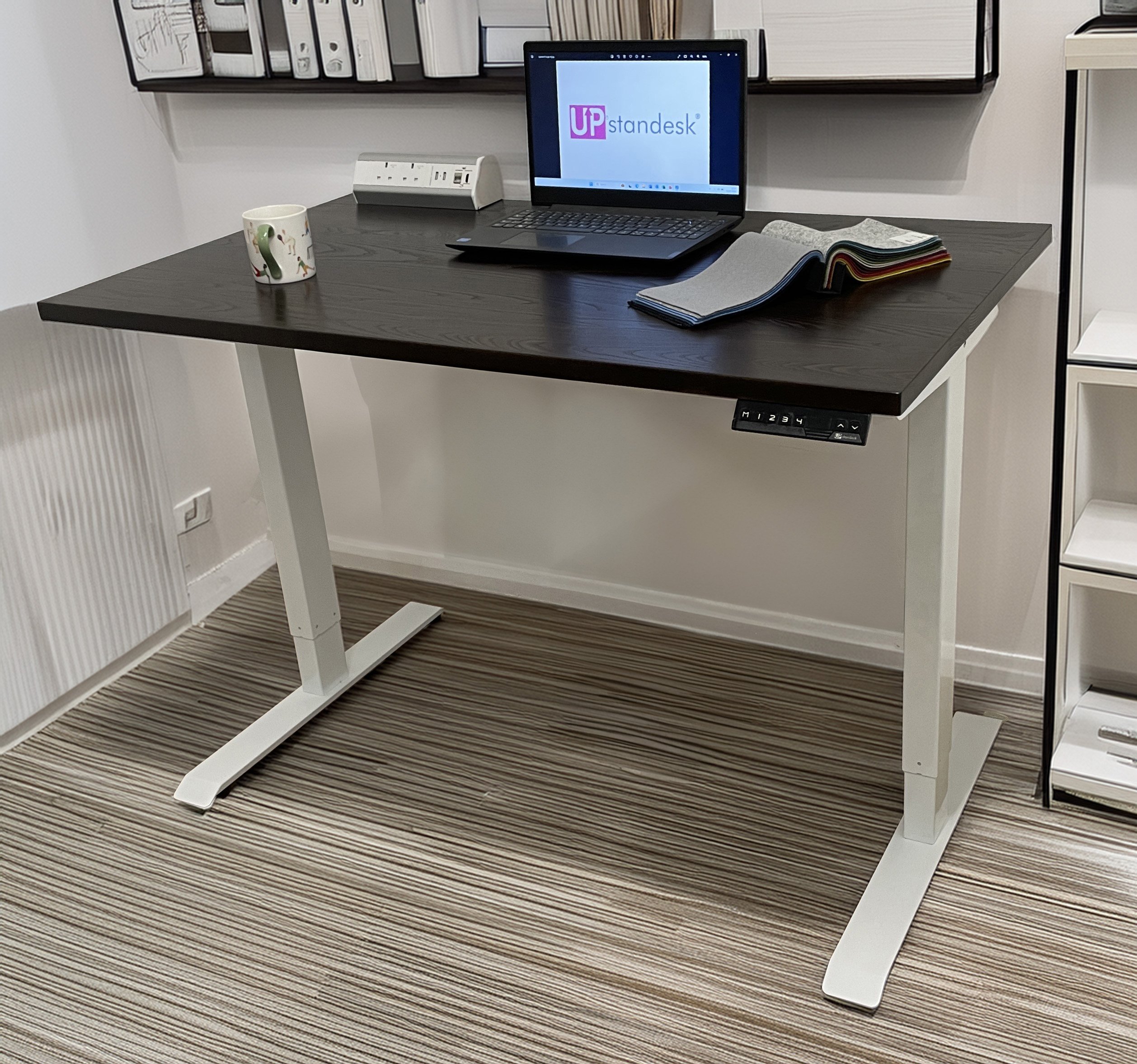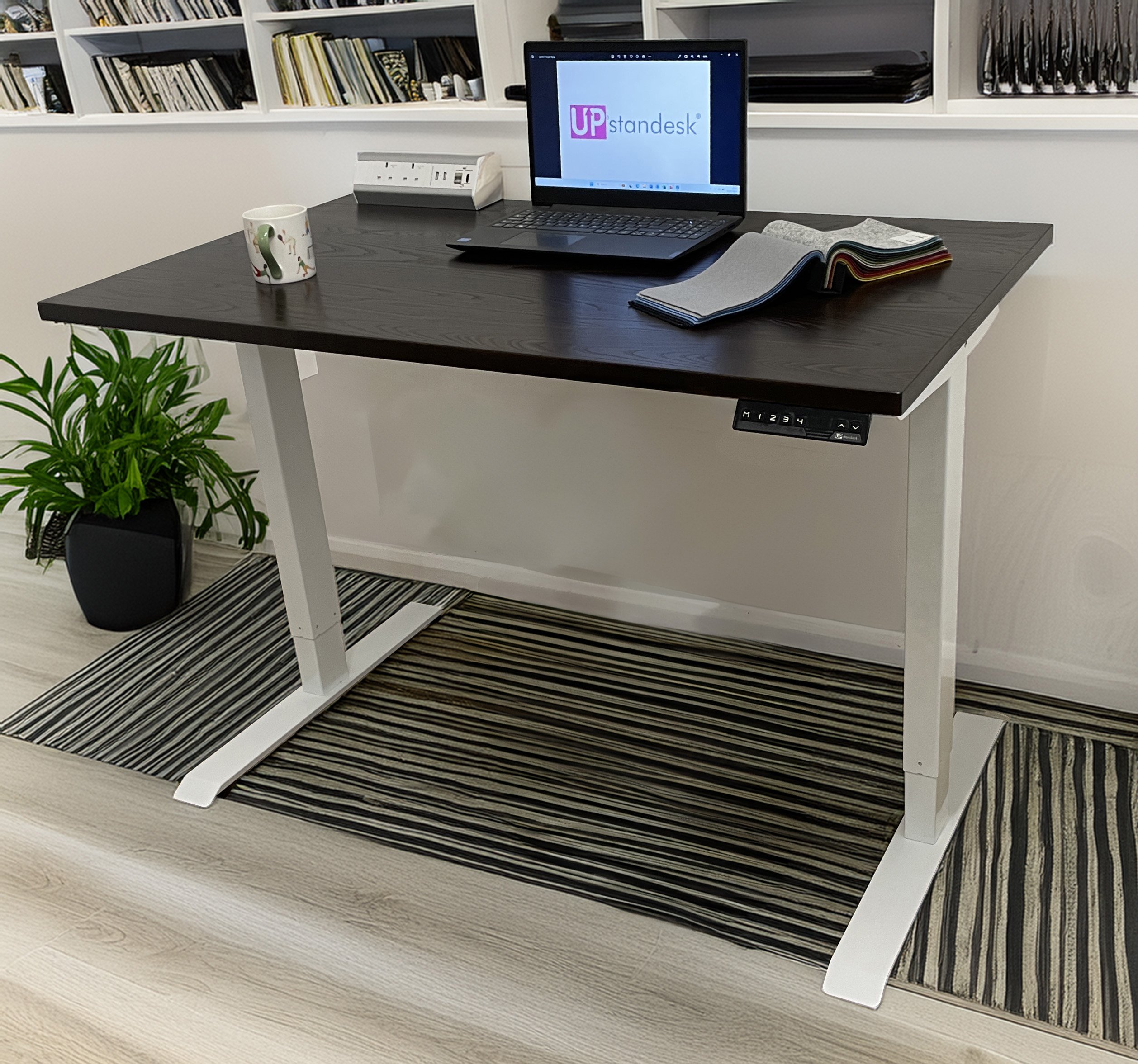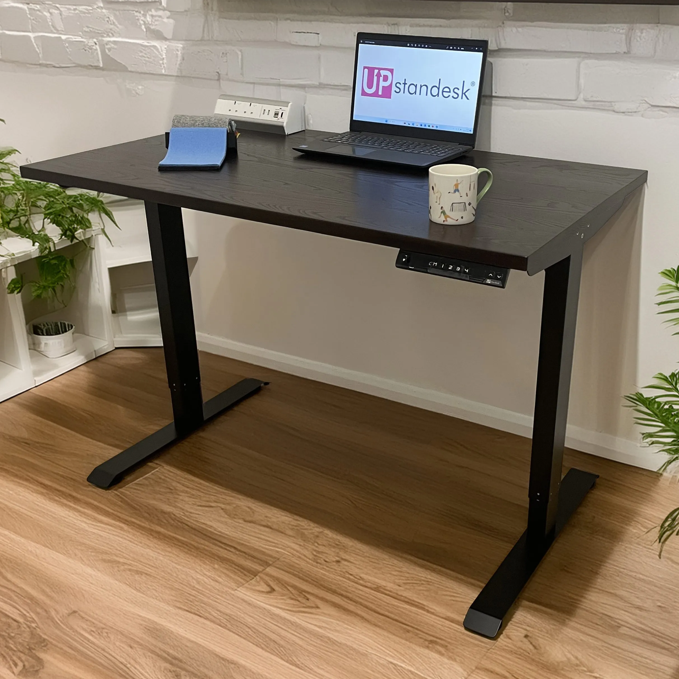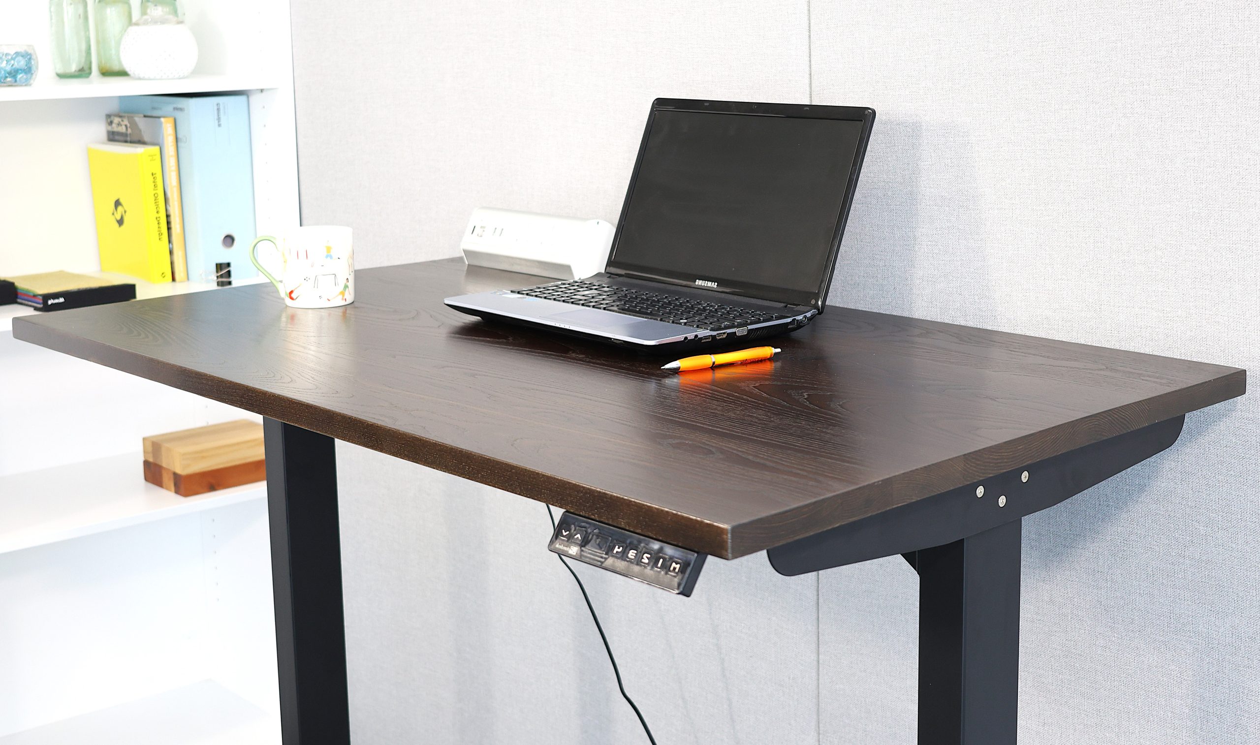 Introducing the Dark Ash Standing Desk, expertly crafted with a robust 25mm thick dark ash wood top. Not only does this premium material ensure long-lasting durability, but it also brings a touch of sophistication to your workspace. Moreover, the rich, deep tones of the ash wood provide warmth and elegance, making your desk a striking centrepiece that will inspire productivity.