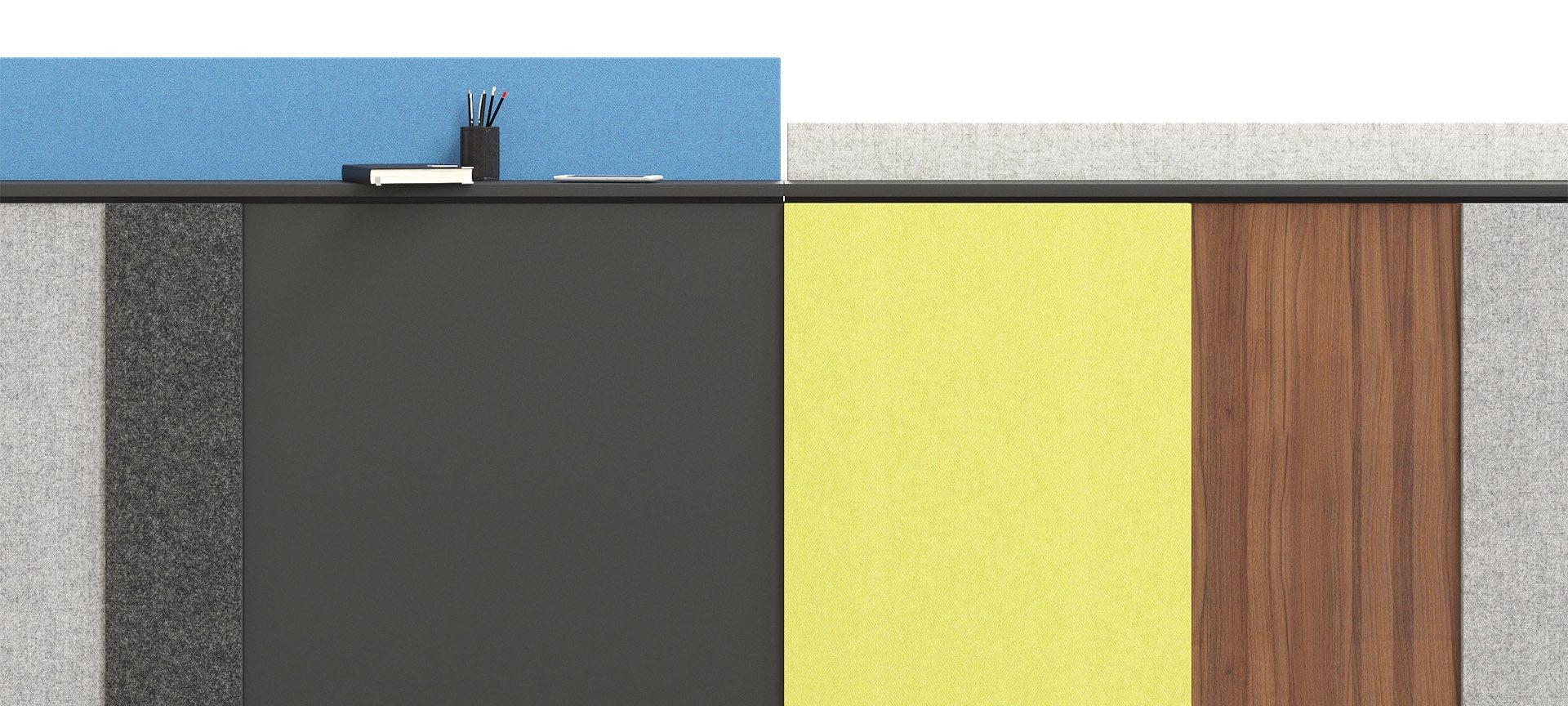 •Modular front panels can be upholstered with fabric, pressed with veneer or melamine;