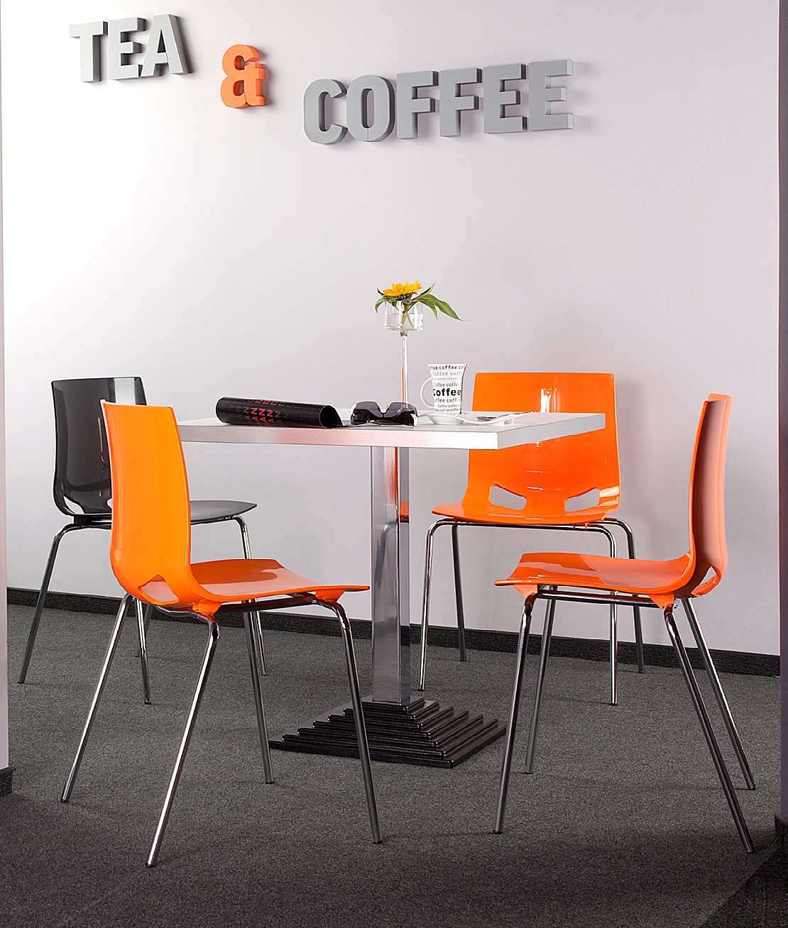 Contemporary style meets everyday comfort in the Hocker meeting chair. The sleek polypropylene seat rests on a beautifully finished chrome C+ frame that gleams with perfect precision. Choose from timeless white or make a bold statement with vibrant red, deep violet, radiant orange, or refreshing lime green. Whether in the kitchen, bar, or studio, the Hocker adds a splash of color and sophistication to any space.
