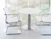 Elevate your space with this robust meeting table, designed for dynamic environments like coworking breakout zones, stylish cafés, and event areas. Its heavy-duty chrome base delivers exceptional stability, while the durable 25mm top resists heat, scratches, and daily wear.