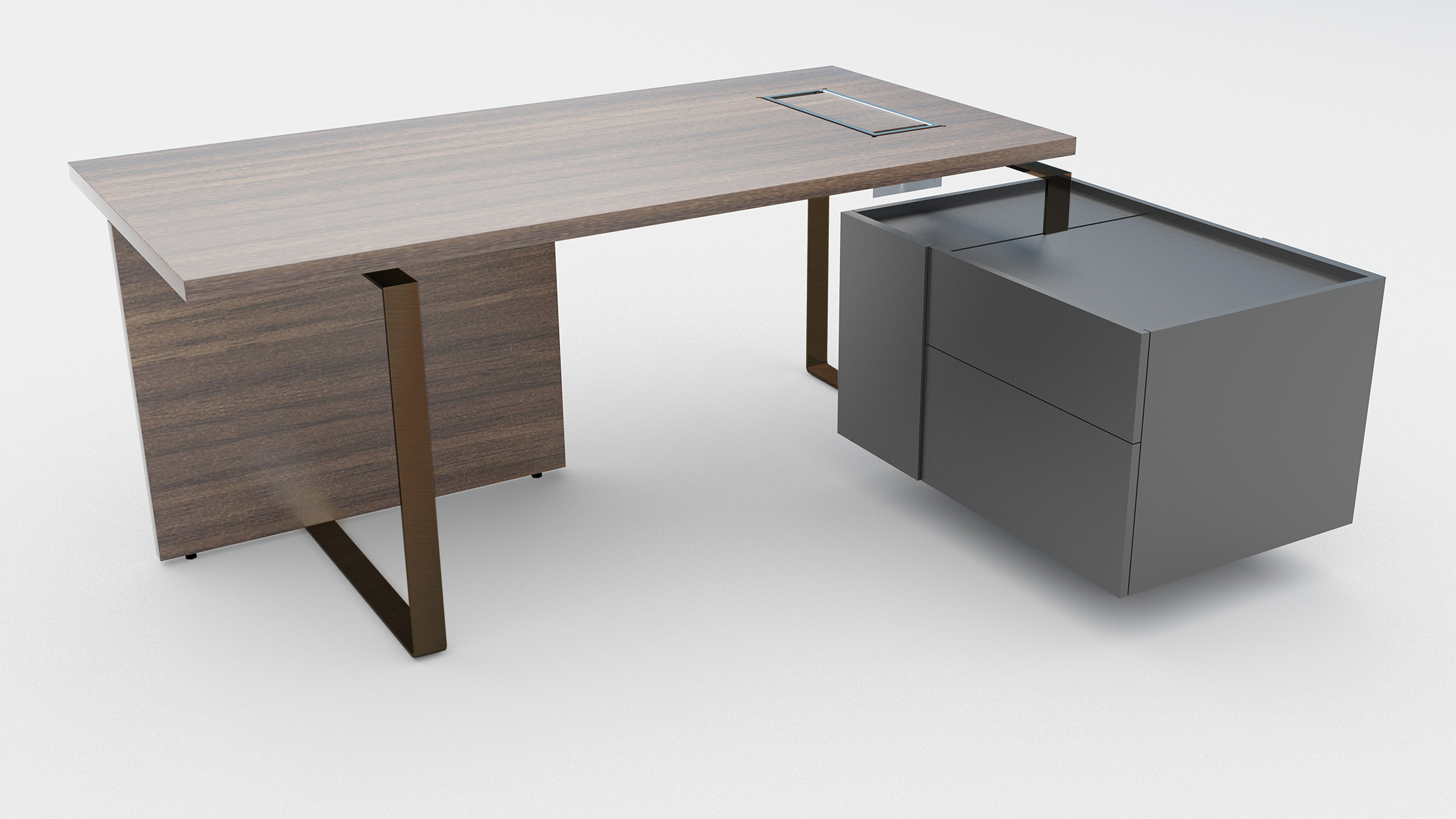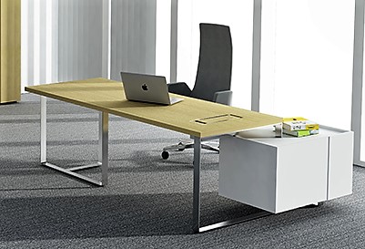 Executive desk with fixed pedestal on the right or left (with grommet and box for power socket)