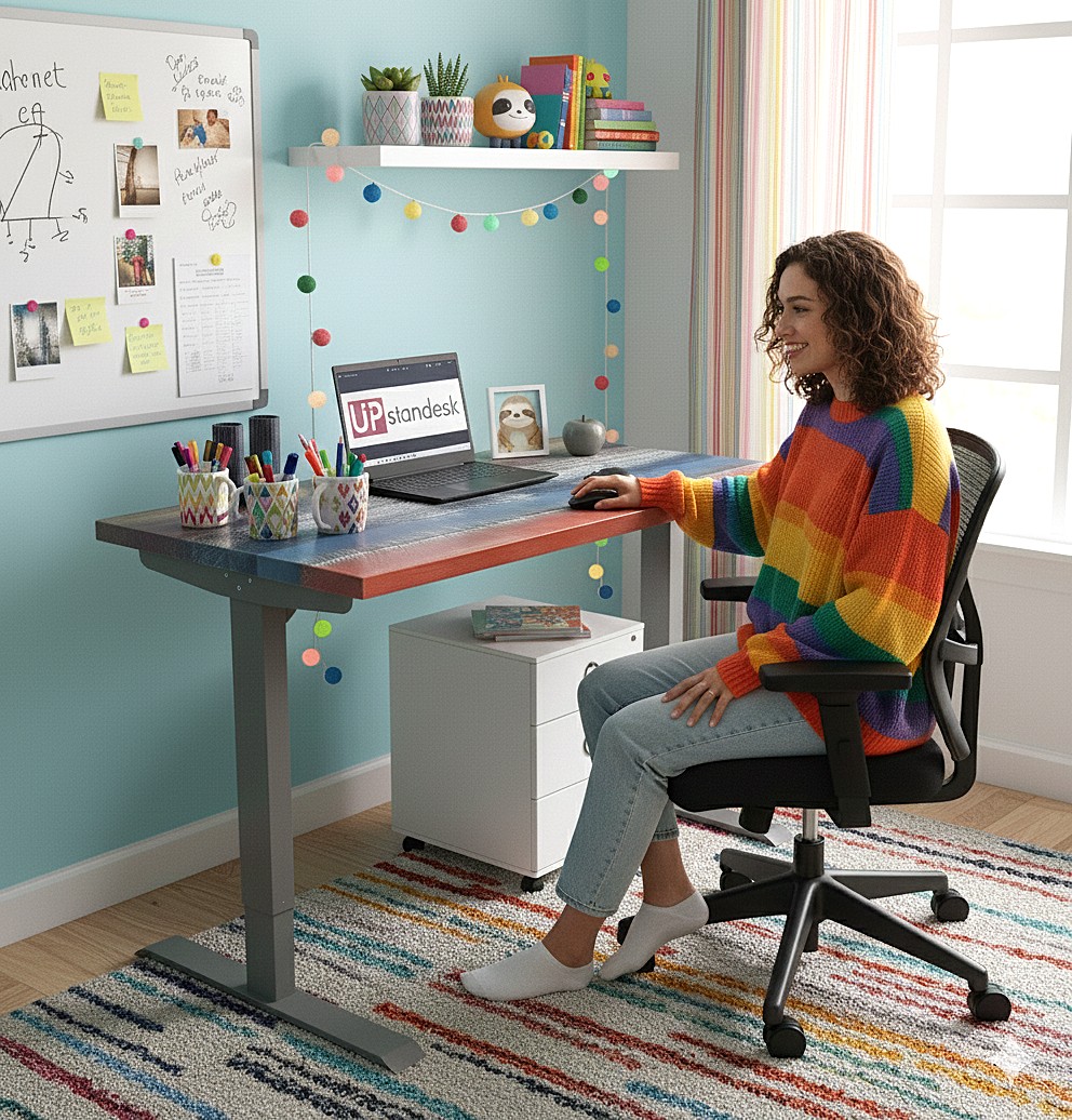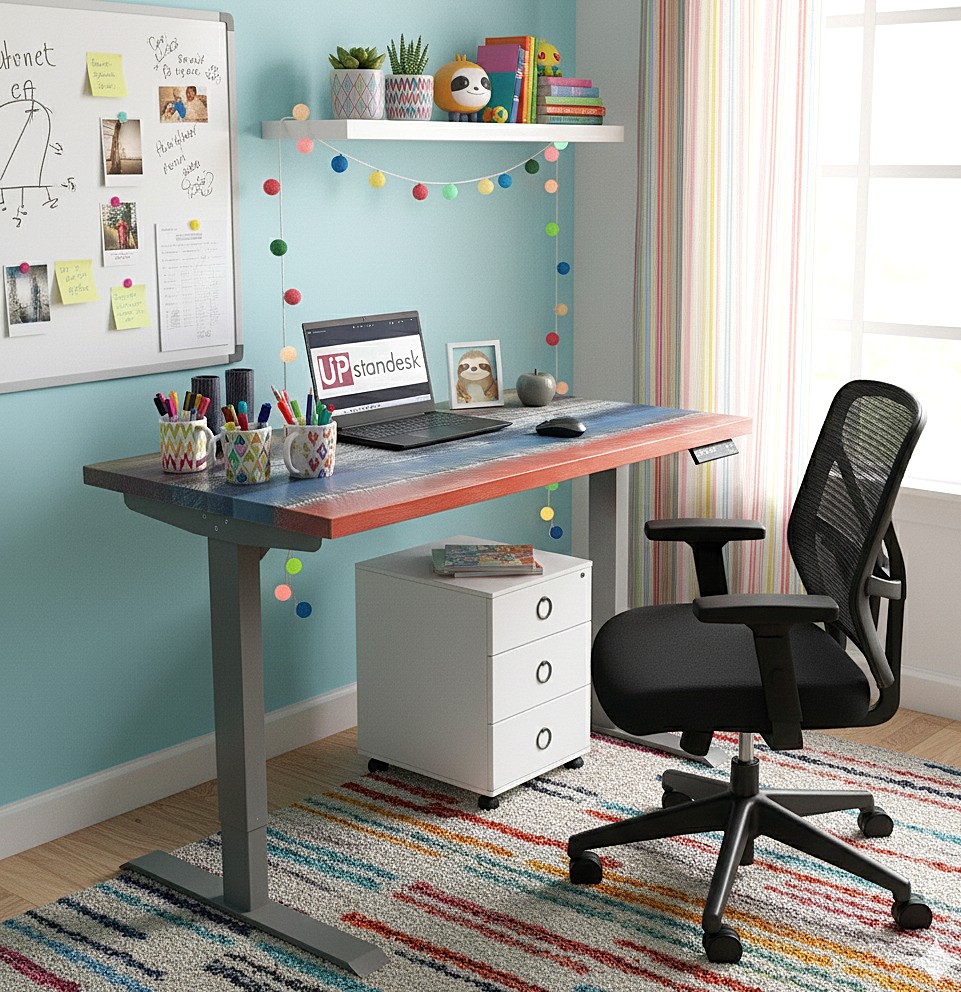 • Rainbow Rustic Pine Desk Tops: A Vibrant and Playful Workspace