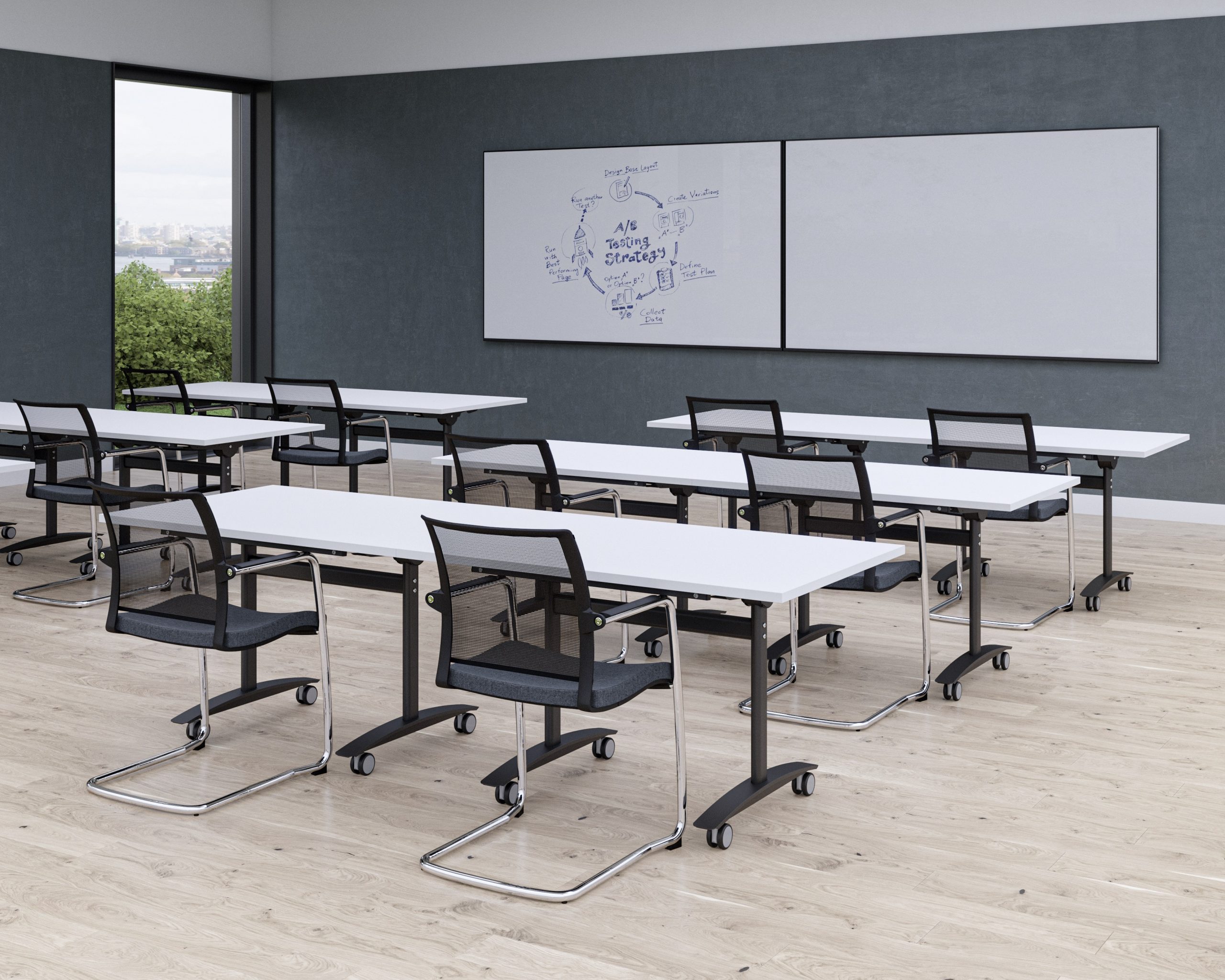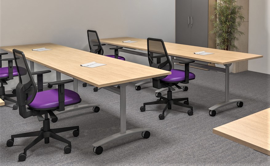 Flexible Storage: Tables can be nested together when tilted to save floor space