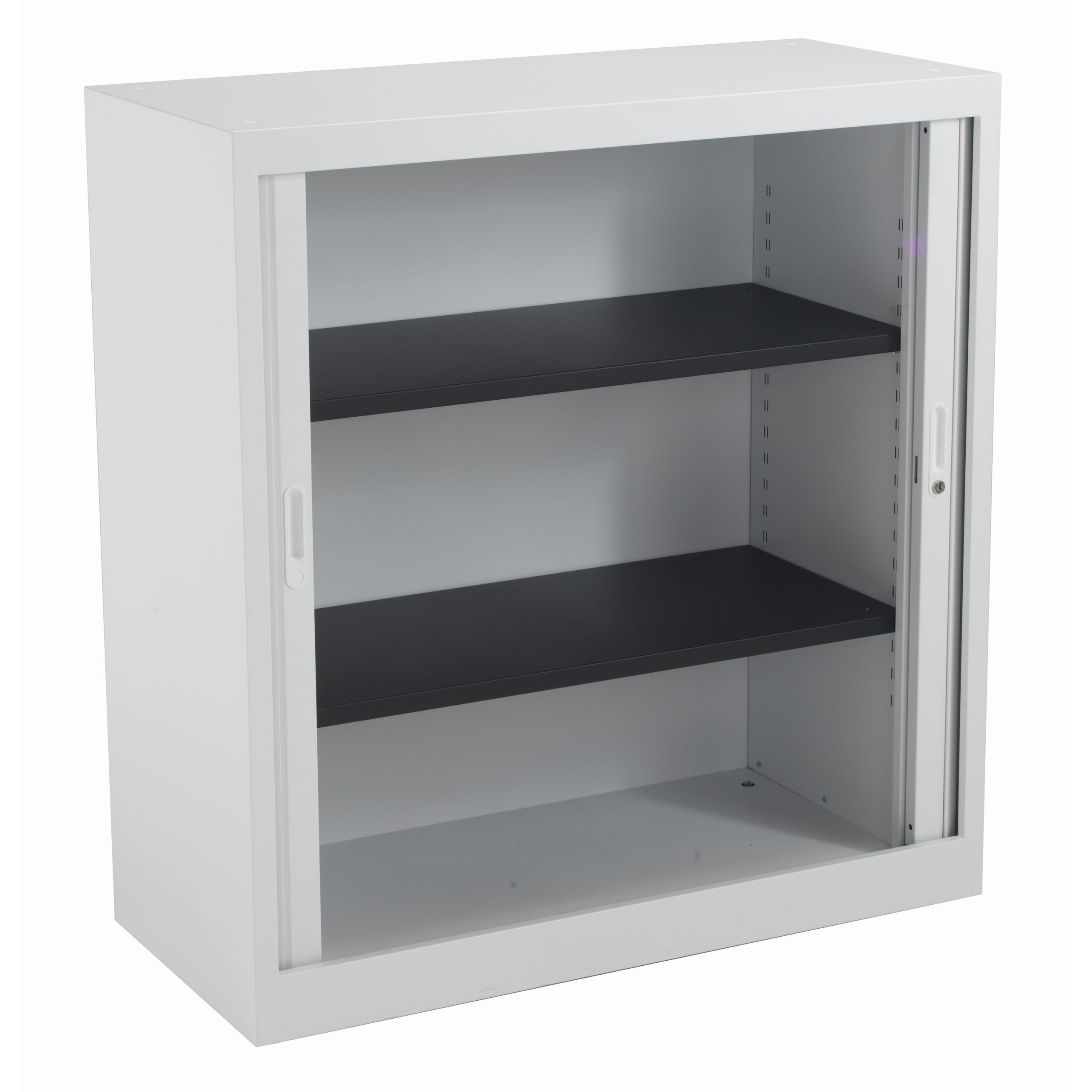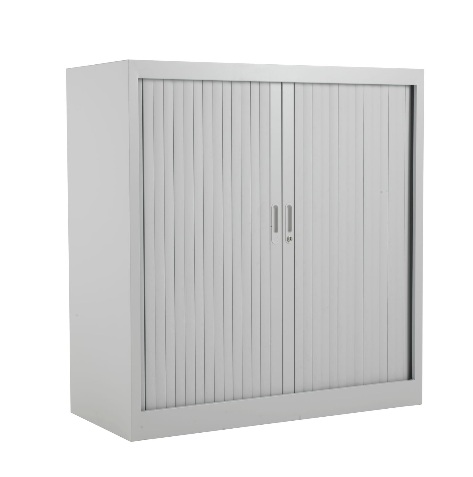 - A flexible alternative to wooden storage, this steel tambour cupboard includes 2 shelves