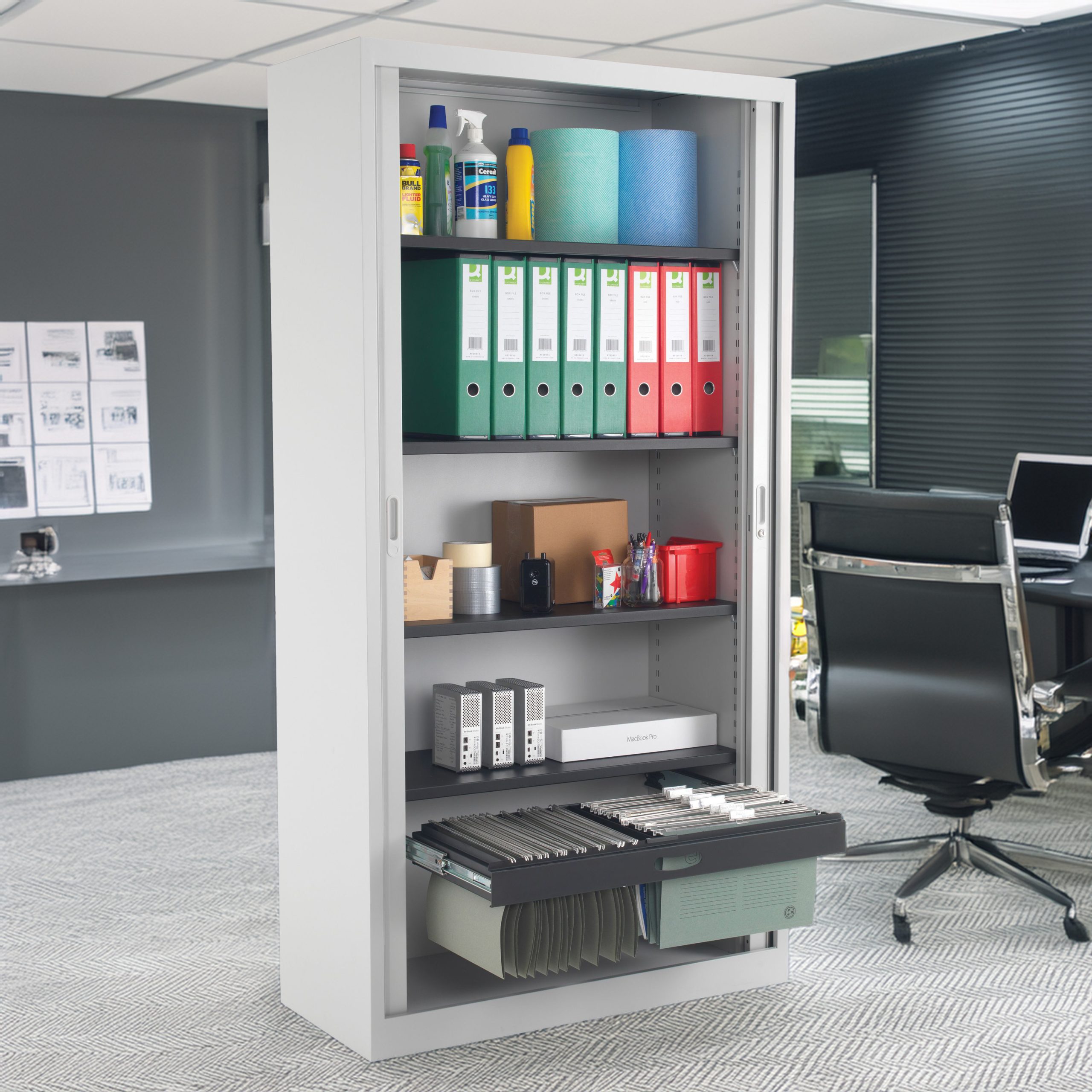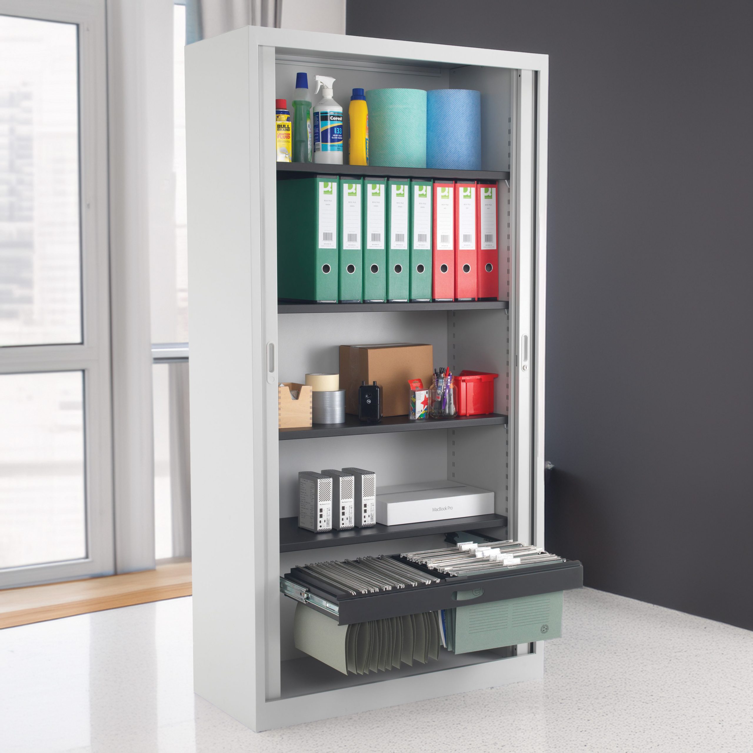 - A range of durable steel storage is now available, for a contemporary office look. Choose from pedestals, tambours or cupboards