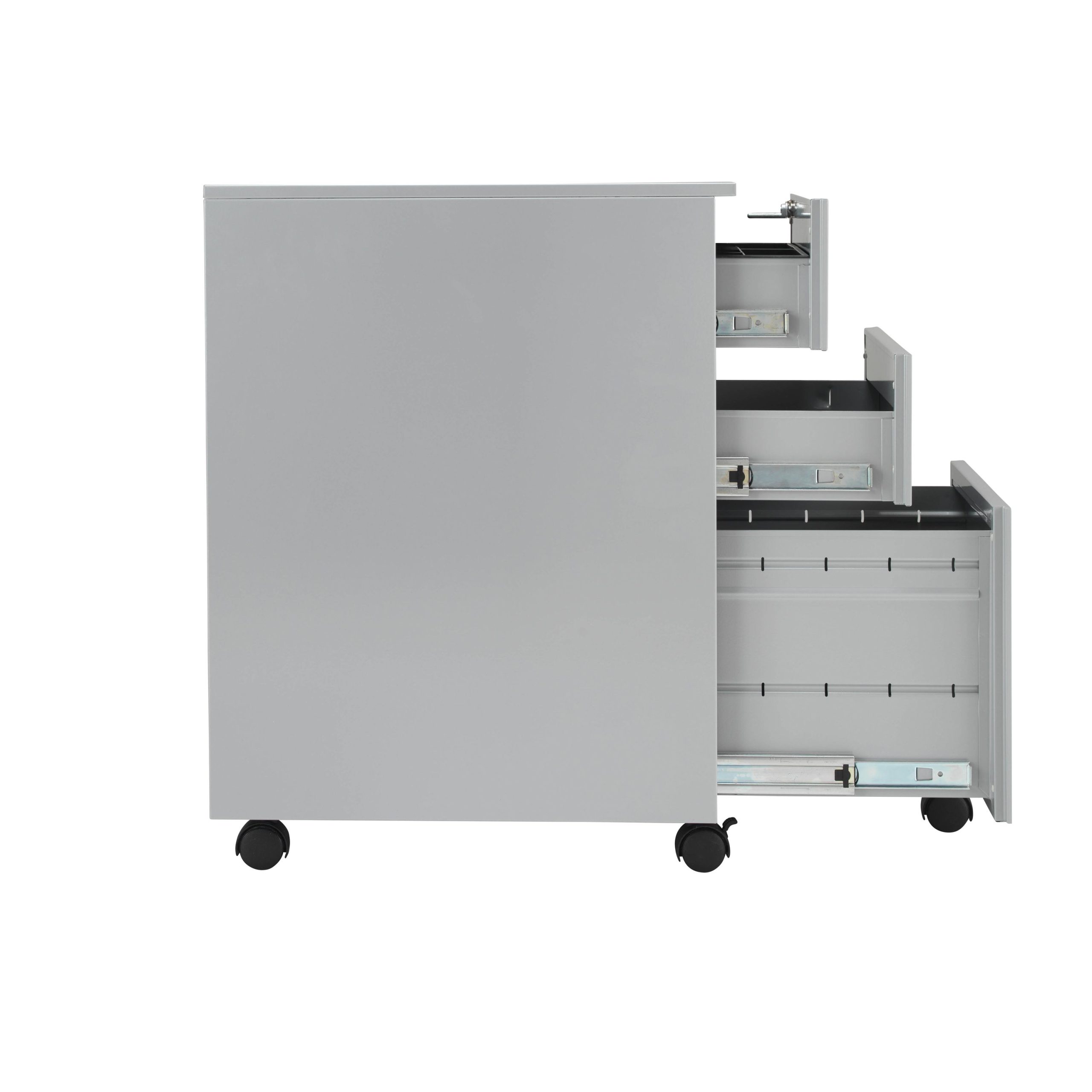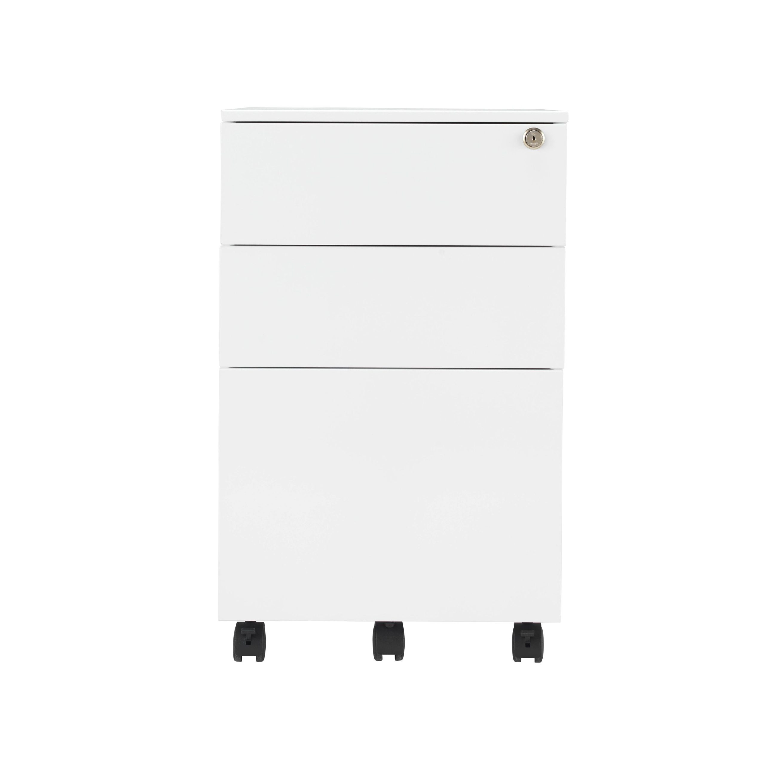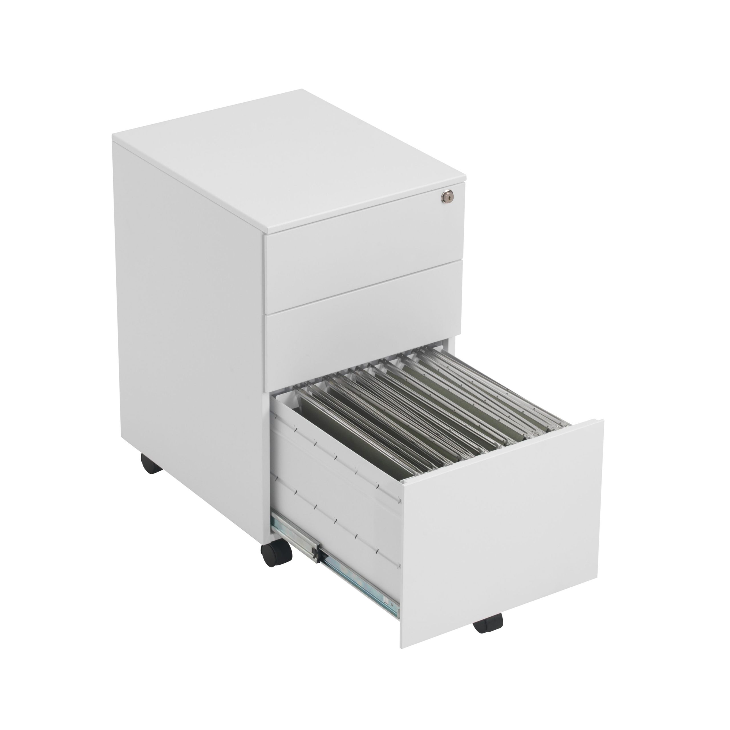 This steel storage unit measures 380mm wide x 470mm deep x 615mm high and comes with lockable drawers, anti-tilt, and smooth Accuride drawer handles for easy operation. The discreet side handle drawers add a touch of elegance to the overall design.