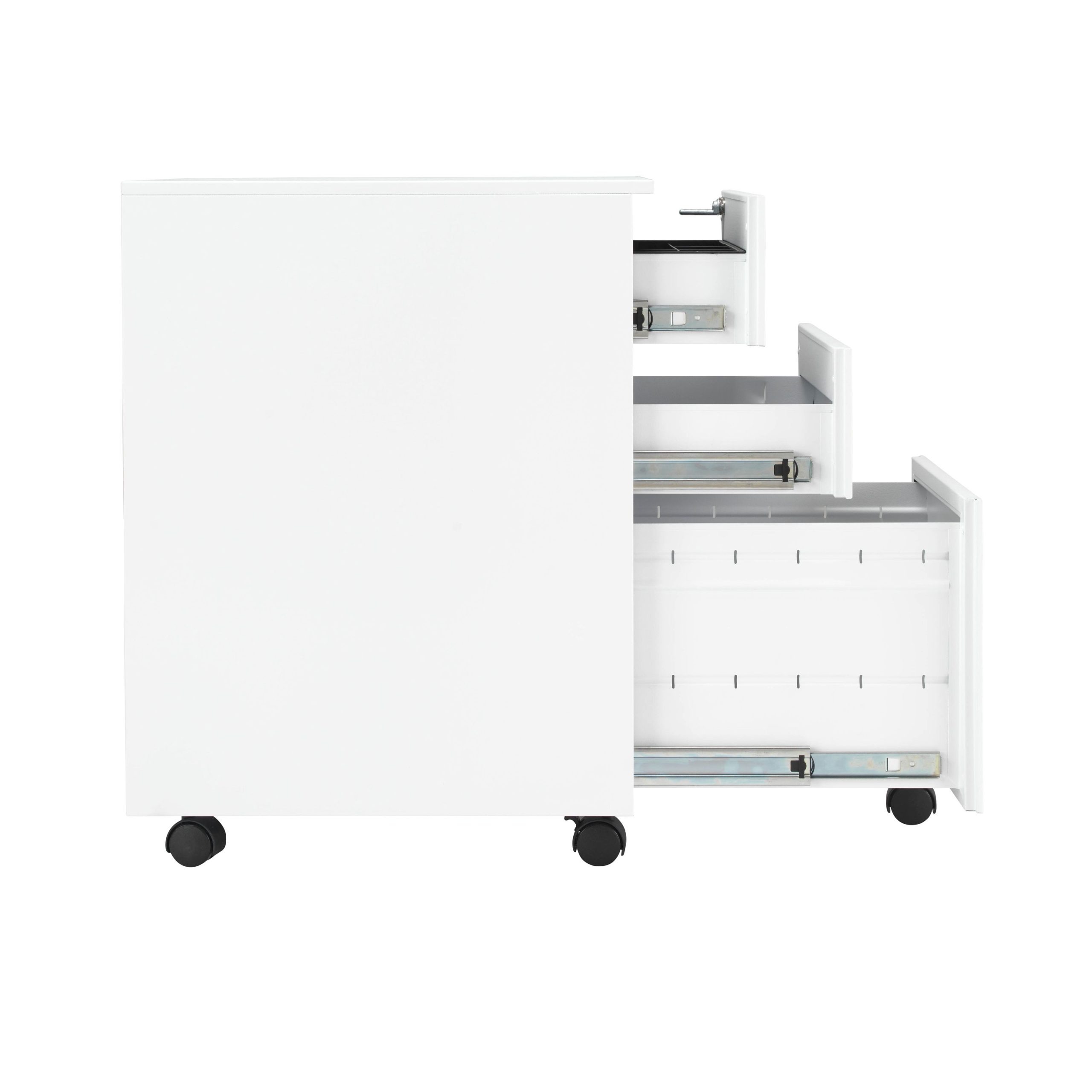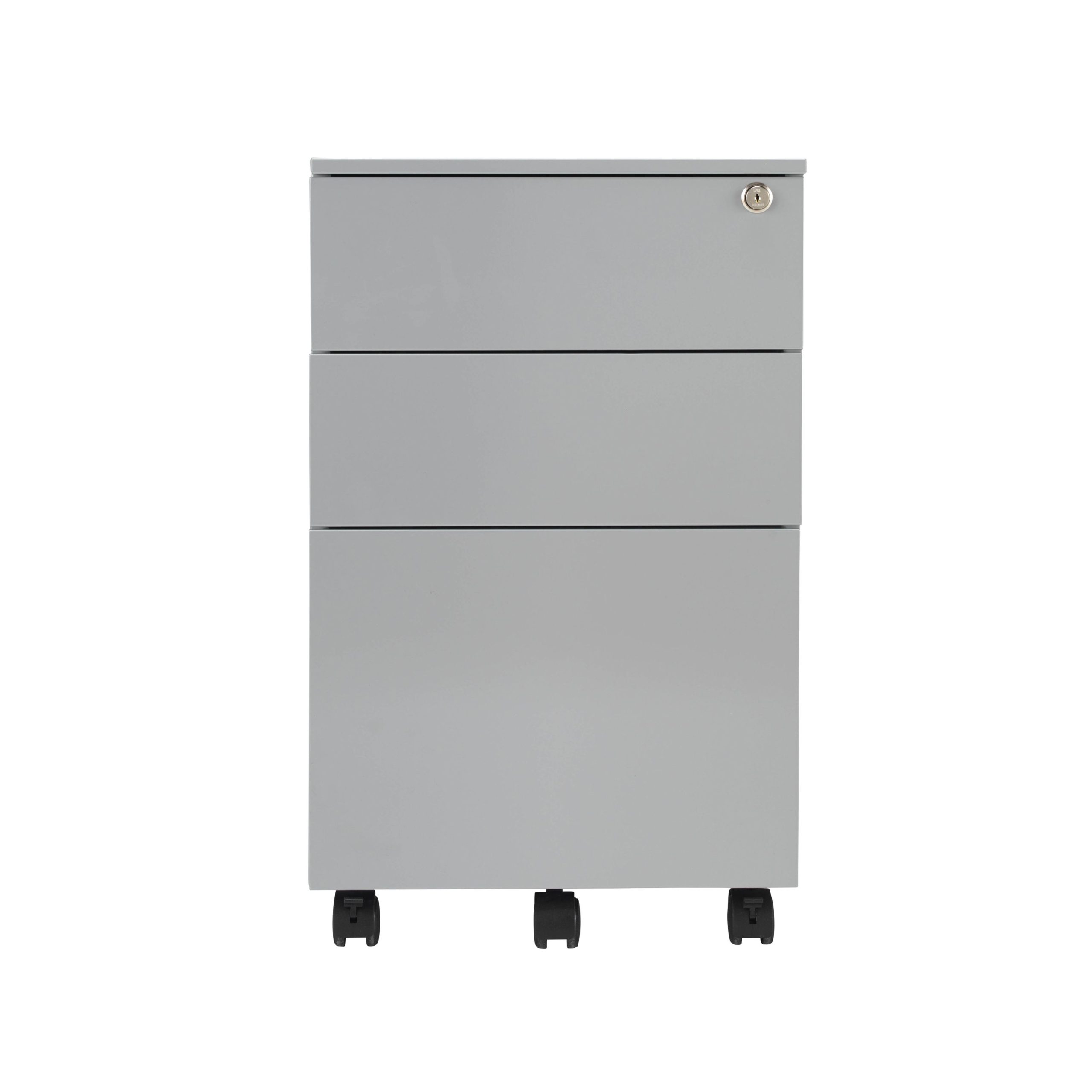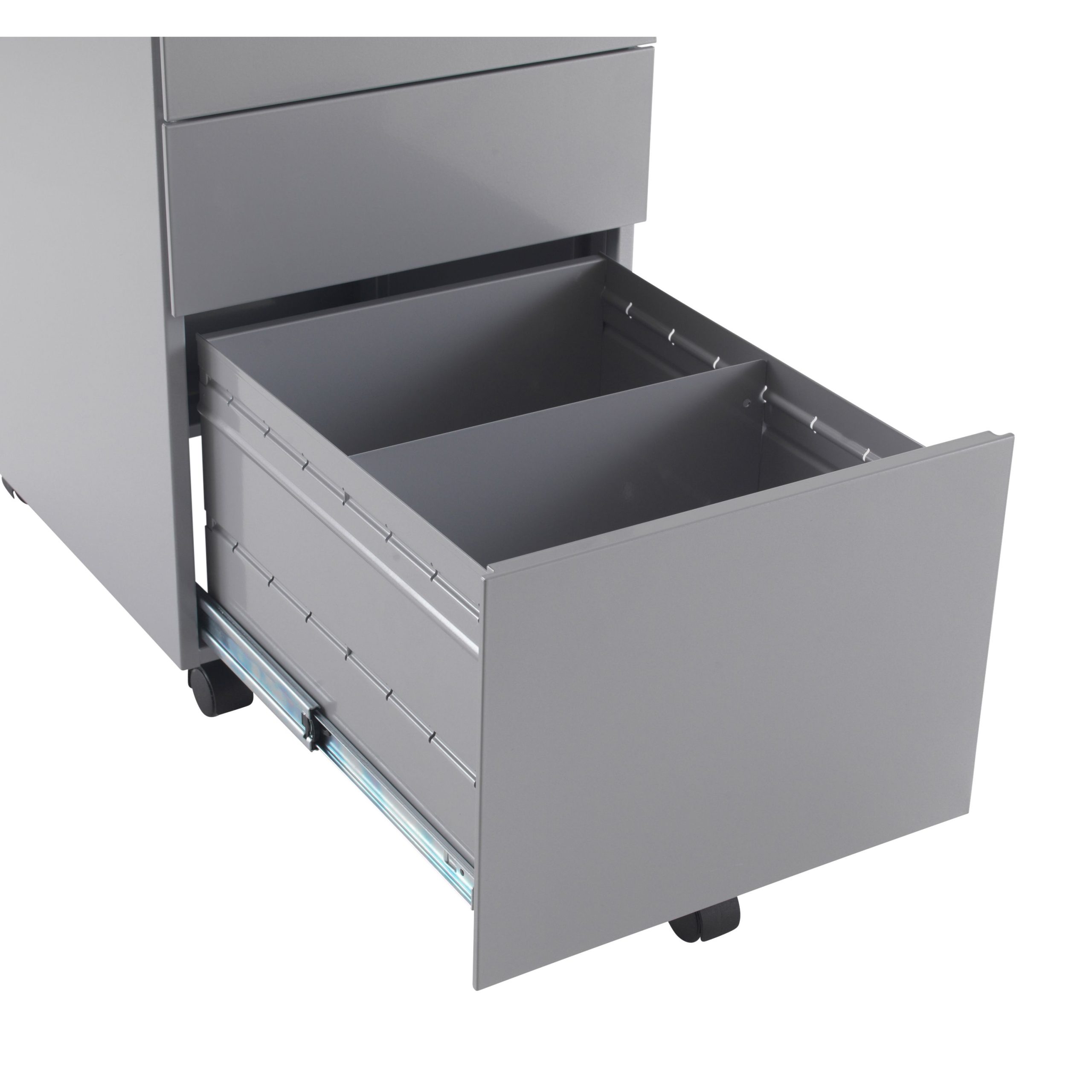 This steel storage unit measures 380mm wide x 470mm deep x 615mm high and comes with lockable drawers, anti-tilt, and smooth Accuride drawer handles for easy operation. The discreet side handle drawers add a touch of elegance to the overall design.