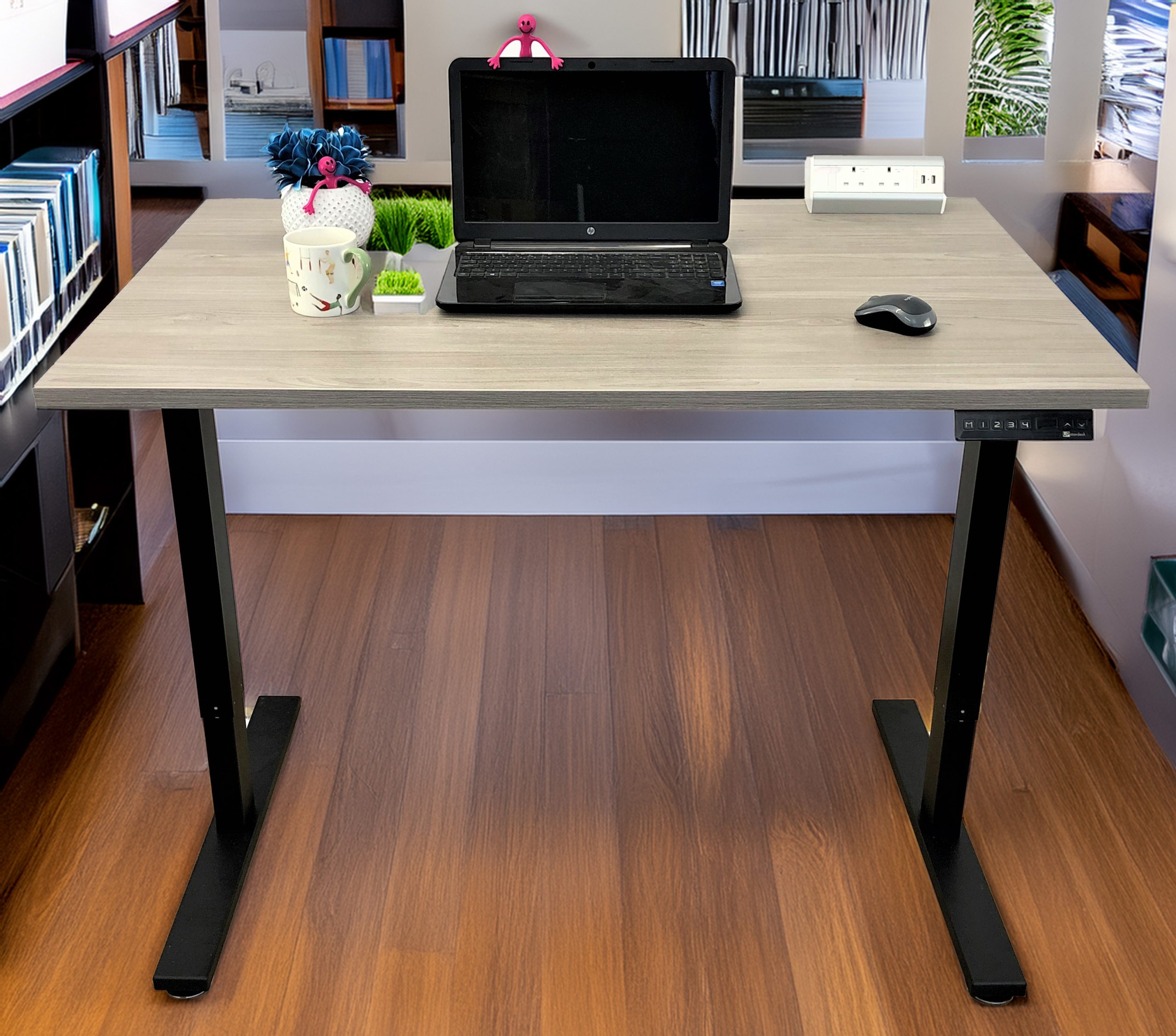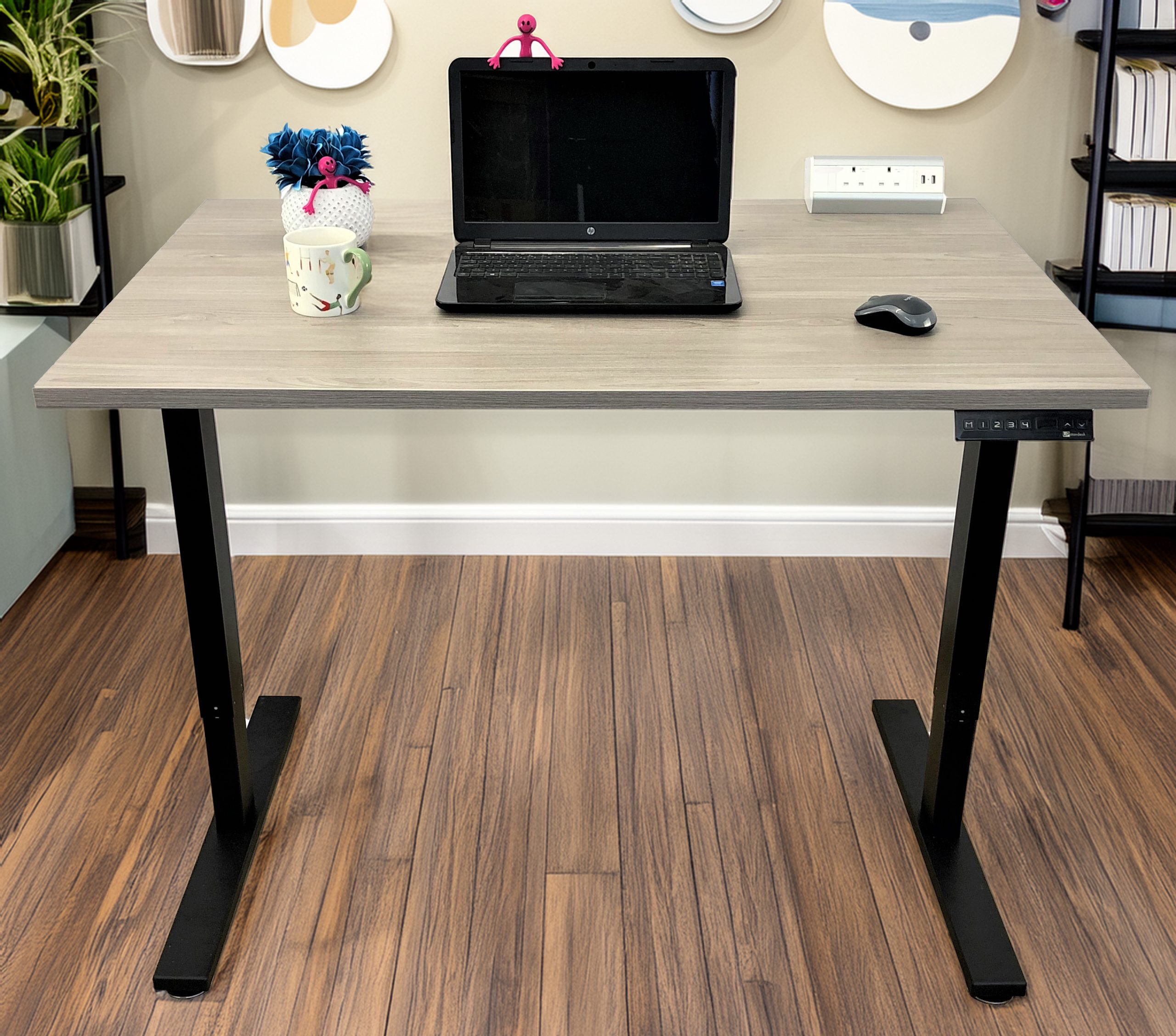 The Wood Grey Standing Desk features a dual motor system for easy height adjustments. With a range from 700mm to 1200mm, you can smoothly switch between sitting and standing to promote better posture. It includes a 4-button memory keypad, which lets you set and recall your preferred heights with ease, all at no extra charge.